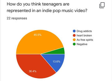 After carrying out this survey, everything became much more clearer to me. This played the role of audience research for me and i found out the demographic and psycho-graphic information for our video. The information that the audience delivered indicates what genre they prefer, what they expect to see, what would draw their attention to a music video. Quantitative questions such as "how often do you watch a music video" developed a statistical result which will make it easier for us to make further decisions. Furthermore, qualitative questions such as "how are teenagers portrayed in music videos" led me to know how most people think about these things.